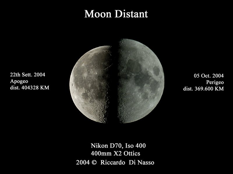 An orbital period of the moon occurs every month. At some point during the year a full moon occurs near the close approach (perigee) - approximately six months later a full moon occurs near the distant approach (apogee). The eccentricity is 5% but the change in distance is a little more - around 15%. There is a good illustration of this in this picture taken from the archives of October 8, 2004 spaceweather.com where the photographer took a picture with the same optics of the moon at the beginning and the third quarter in which the image of the first quarter was at perigee, and the image of the third quarter was close to climax. You can see the difference. If we could do this with the naked eye, two weeks apart - well, that's another story!